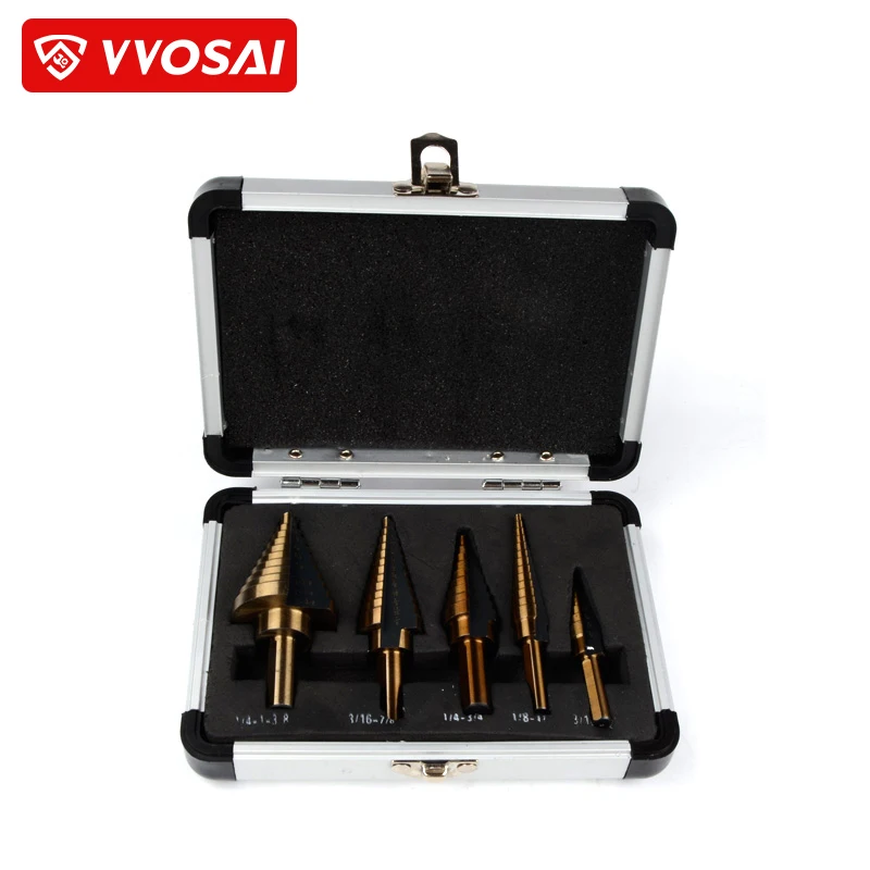 VVOSAI 5pcs/Set HSS COBALT MULTIPLE HOLE 50 Sizes STEP DRILL BIT SET w/ Aluminum Case